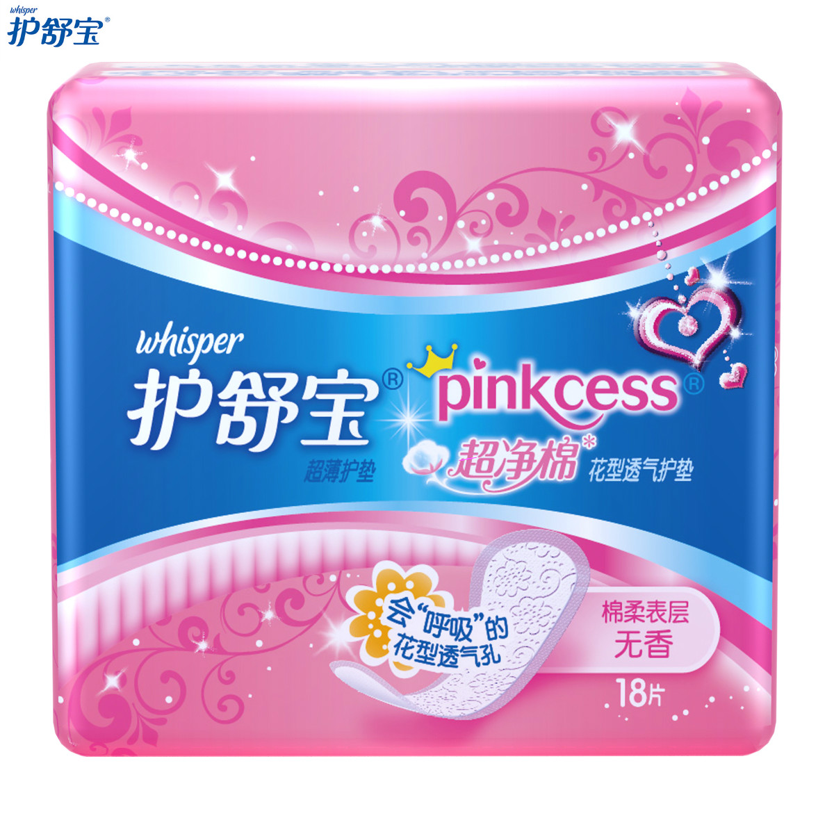 宝洁正品 护舒宝 pinkcess超净棉花型透气护垫无香18片
