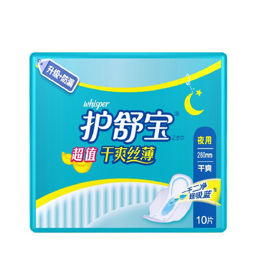 Whisper护舒宝超值干爽丝薄夜用280mm 10片卫生巾
