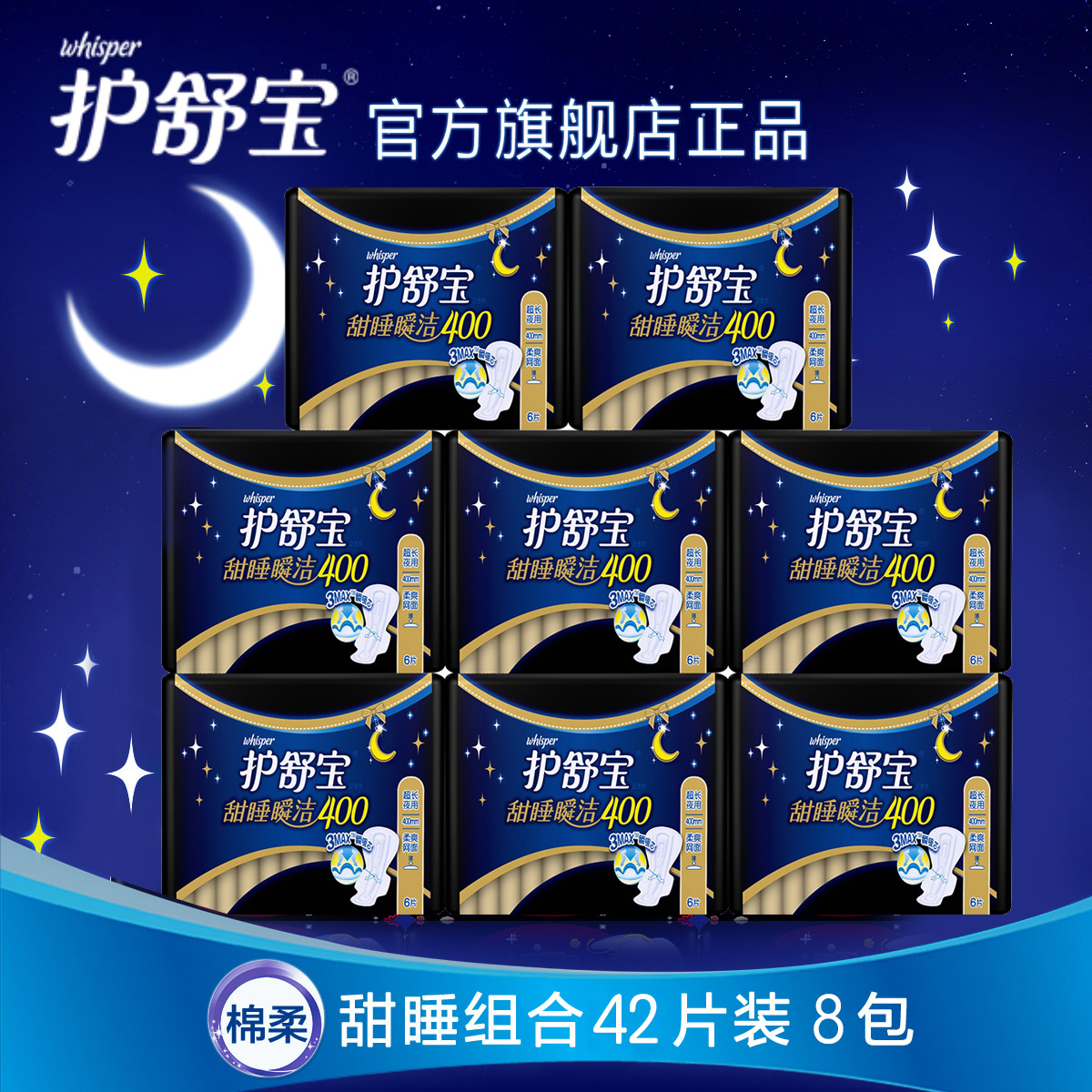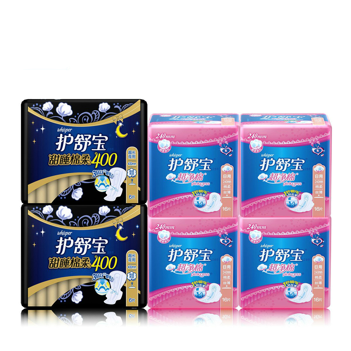产地:中国大陆 是否量贩装:否 是否进口:国产 适用时间:夜用 表面材质:棉柔亲肤 是否有香味:无香味 卫生巾分类:夜用 是否有护翼:有护翼 品牌:whisper/护舒宝 包装数量(片):60 型号:甜睡棉柔400x4包+360x6包 套餐 规格:400mm+360mm 查看全文