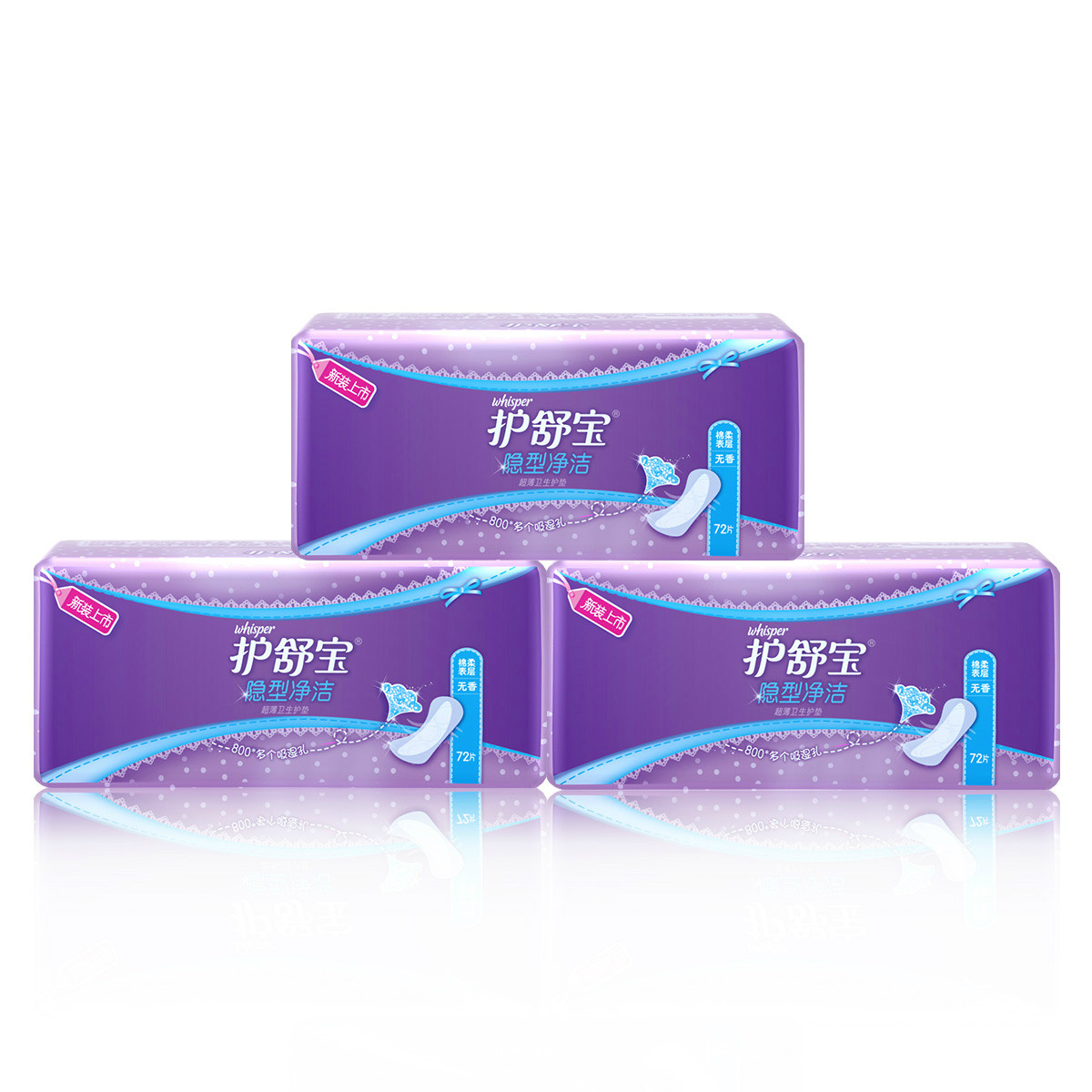 护舒宝卫生巾 隐型净洁超薄卫生护垫无香72片*3包
