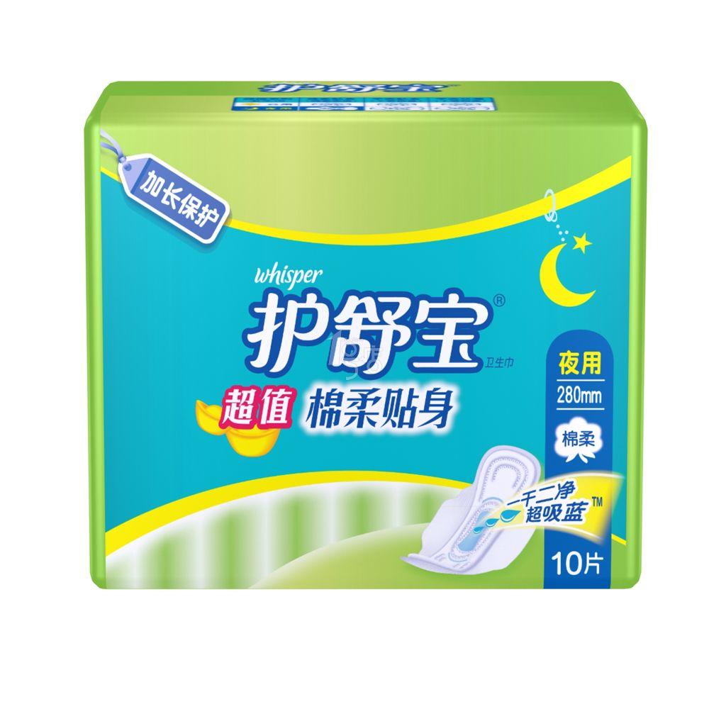 护舒宝超值棉柔贴身夜用卫生巾10片装 加长保护超吸收280mm 1号店
