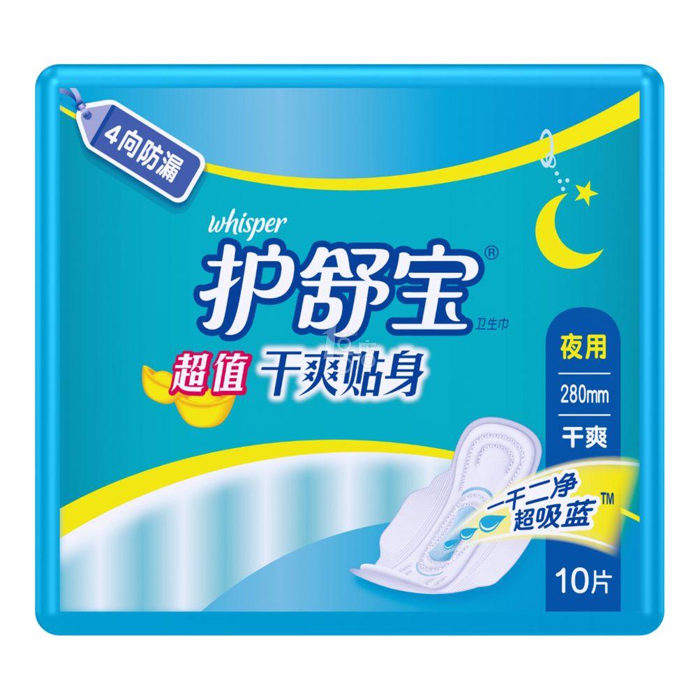 护舒宝超值干爽贴身夜用卫生巾10片装 干爽防漏超吸收280mm 1号店