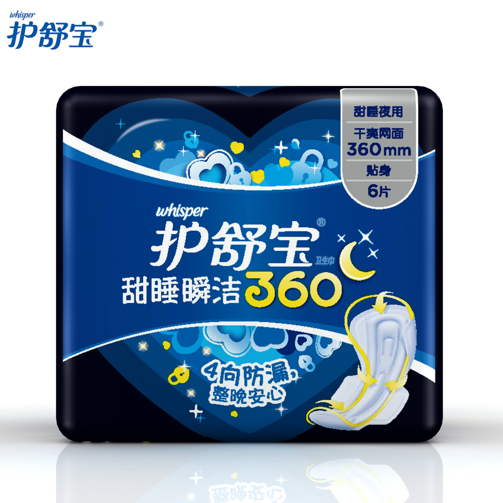 护舒宝甜睡瞬洁360 卫生巾6片正品姨妈巾夜用防过敏棉柔贴身丝薄