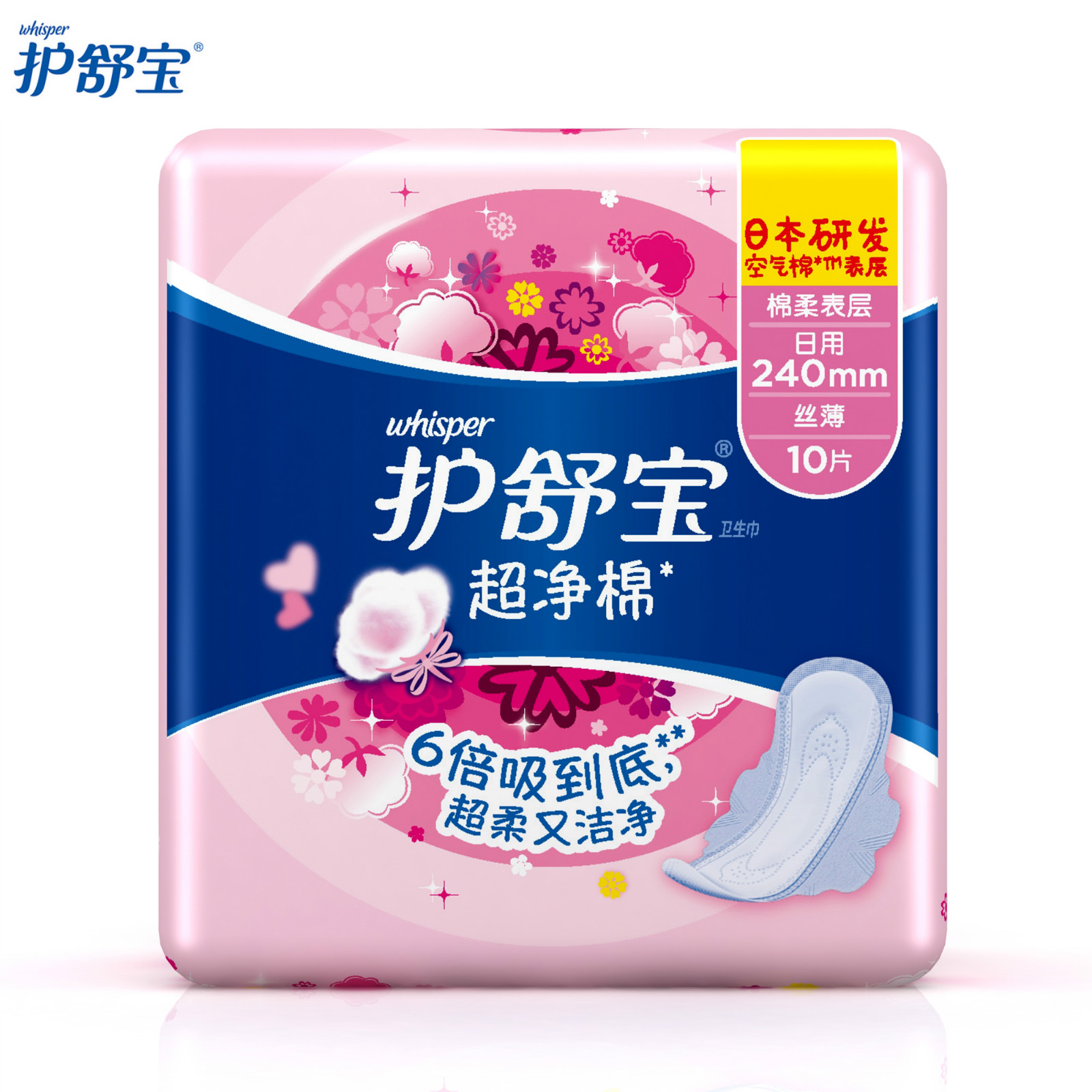 护舒宝卫生巾姨妈巾超净棉丝薄日用10片贴身预防敏感情人节专属