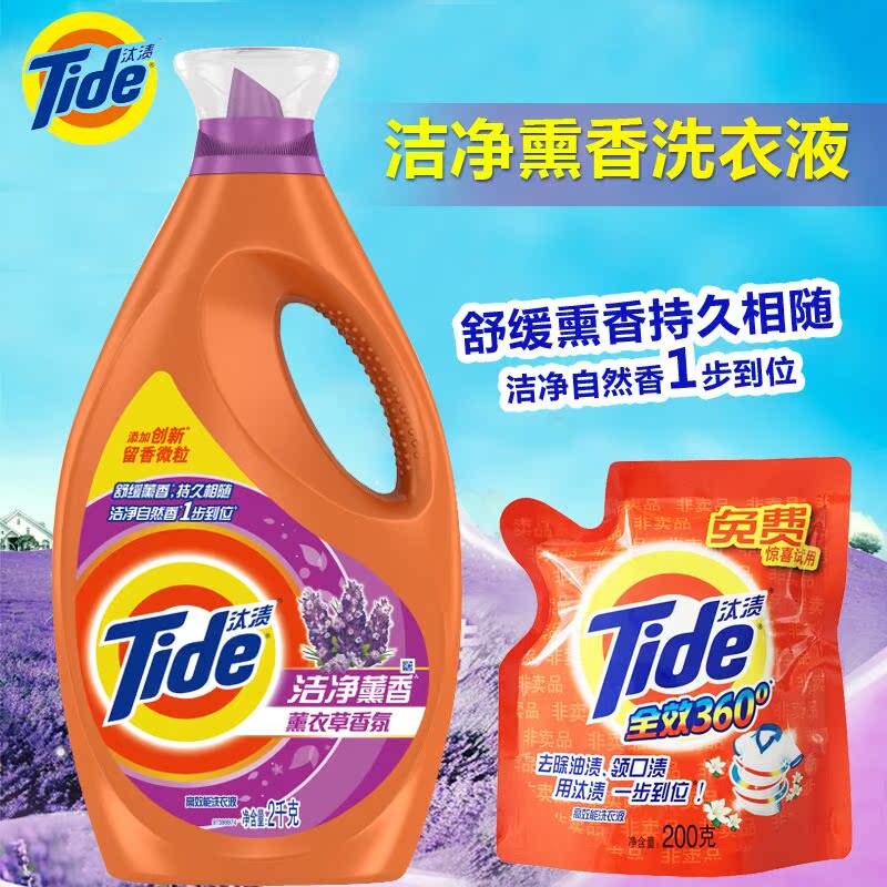 是否量贩装:否 品牌:Tide/汰渍 型号:洁净薰香薰衣草柔香洗衣液2千克 查看全文
