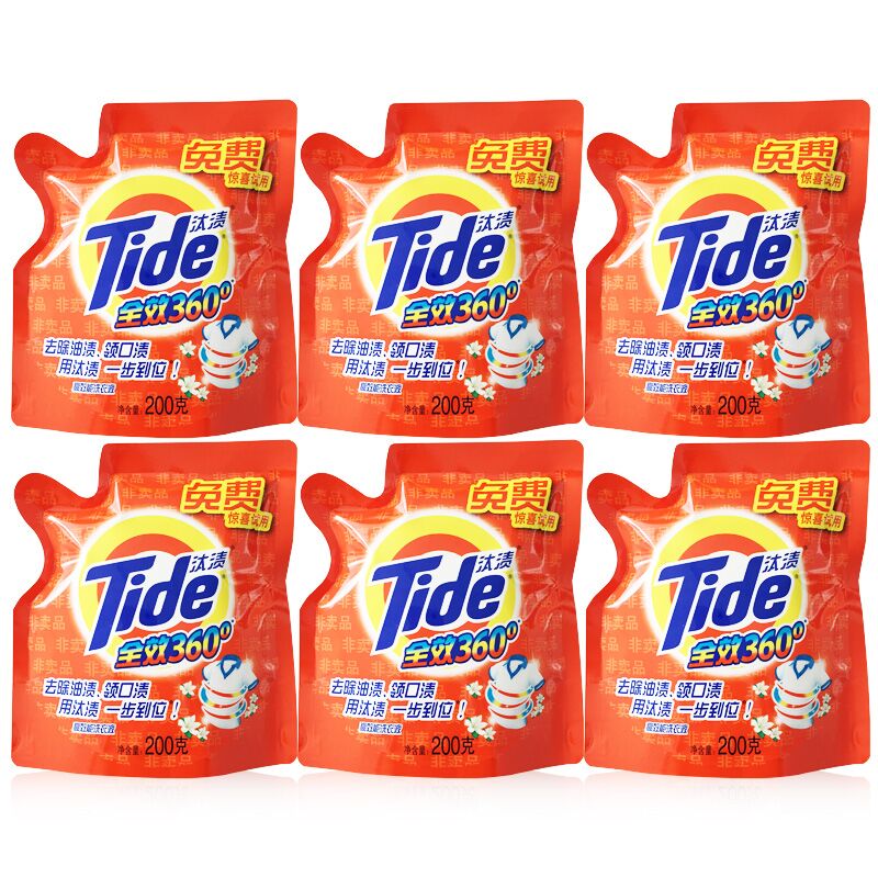 汰渍洗衣液全效去污渍360度200克*6包 高效能 多省包邮