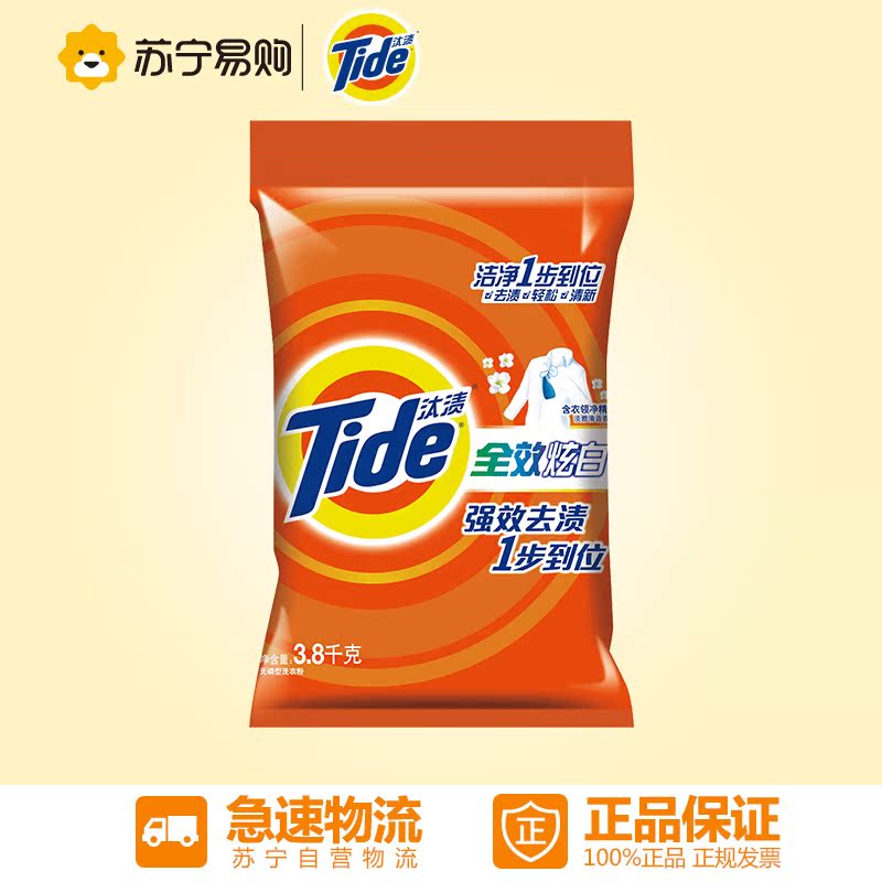 是否量贩装:否 品牌:Tide/汰渍 型号:汰渍全效炫白洗衣粉 3.8千克 查看全文