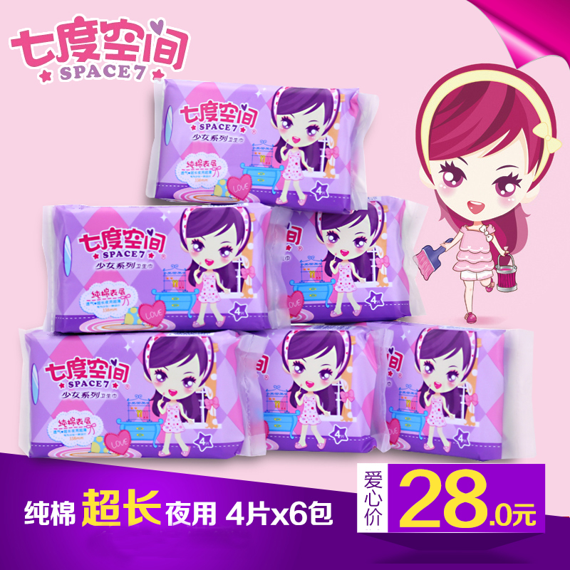 七度空间少女卫生巾 纯棉超长夜用 4片x6包 组合装