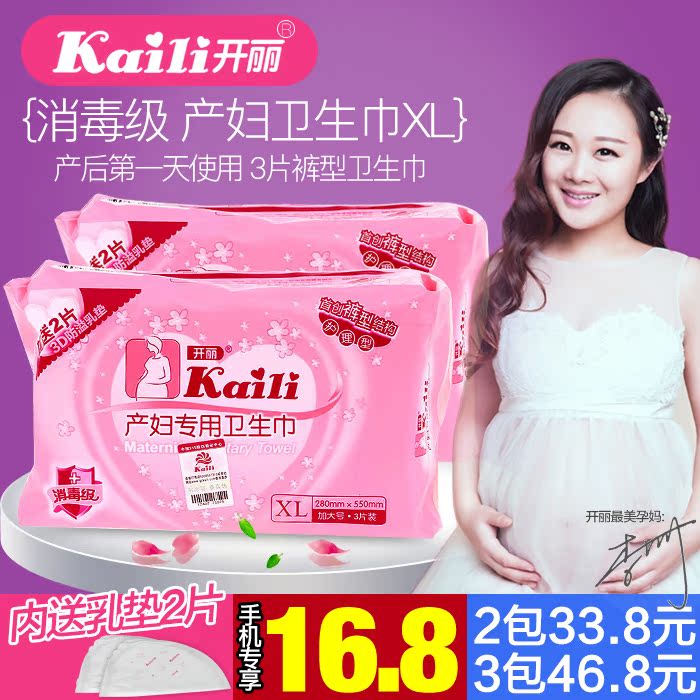 开丽产妇卫生巾 消毒级卫生巾产褥期卫生巾产后裤型卫生巾XL号