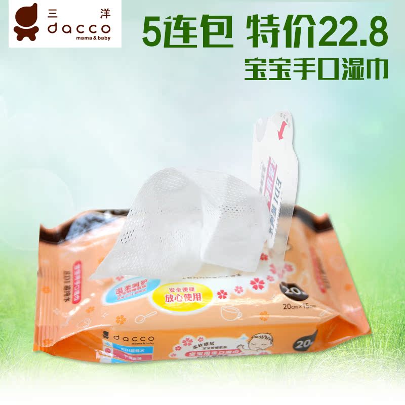 dacco三洋湿巾 婴儿柔湿巾宝宝纯水湿巾新生儿清洁湿巾20抽*5包
