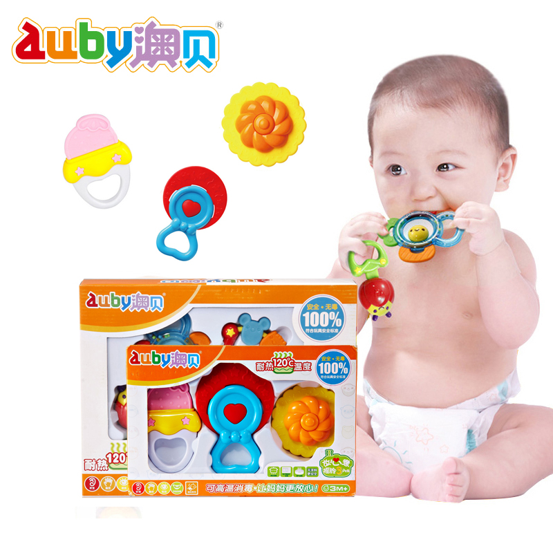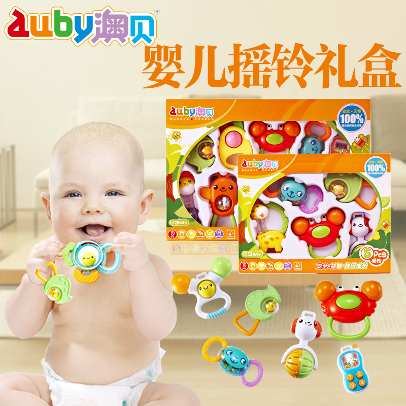 澳贝/奥贝放心煮婴儿摇铃牙胶5只装 宝宝玩具礼盒0-1岁新生儿益智