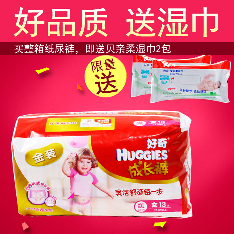 好奇 金装成长裤拉拉裤 婴儿纯棉纸尿裤 加加大号女宝宝XXL13片装