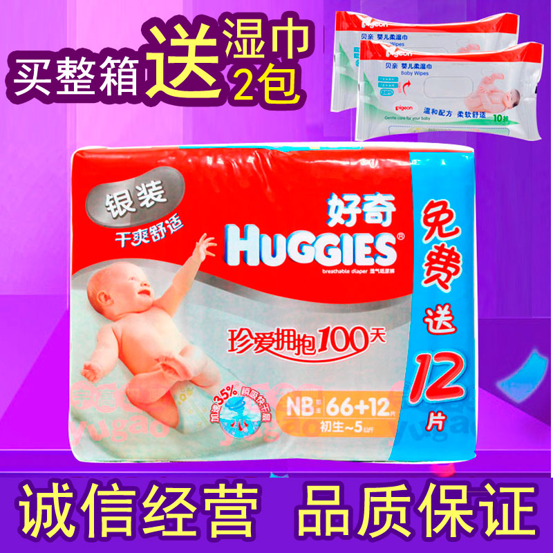 好奇银装纸尿裤 婴儿超柔贴身婴儿尿不湿 新生儿超值装NB66+12片