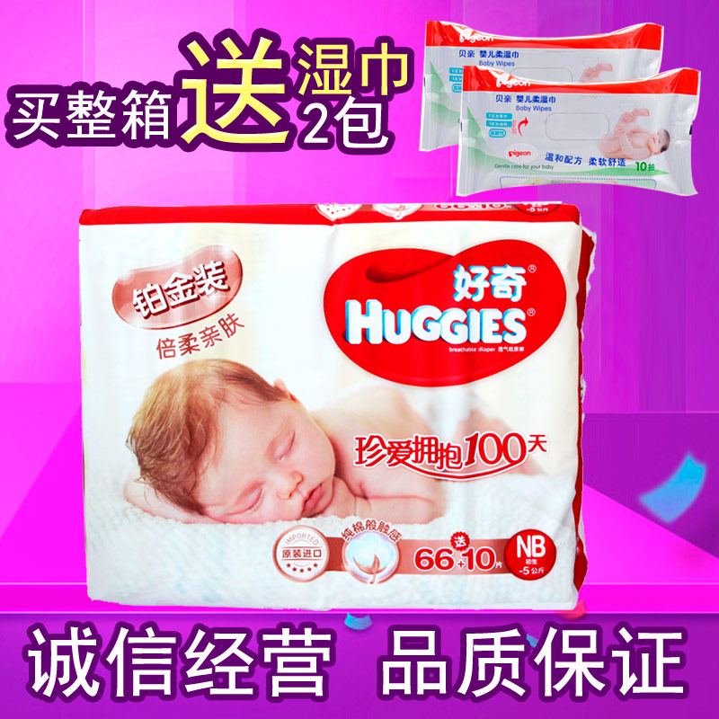 【正品包邮】好奇铂金装倍柔亲肤婴儿纸尿裤 原装进口初生NB66+10