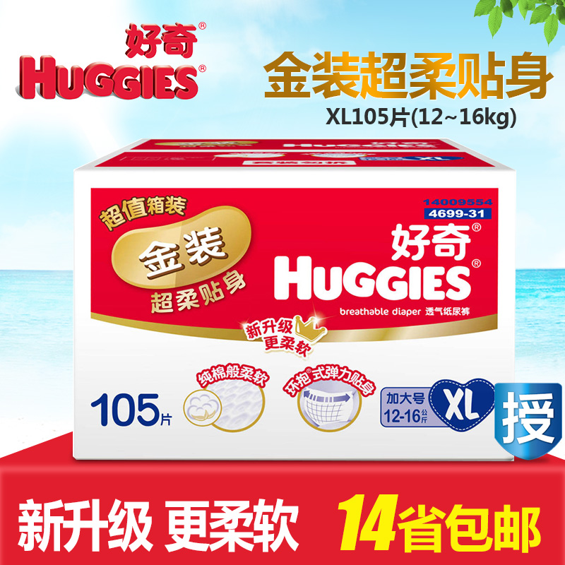 好奇金装贴身舒适婴儿纸尿裤彩箱装XL105片 宝宝尿不湿 原装进口