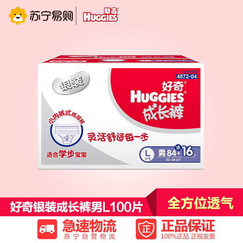 【苏宁易购】好奇纸尿裤L100片银装成长裤婴儿拉拉裤男宝宝学步裤