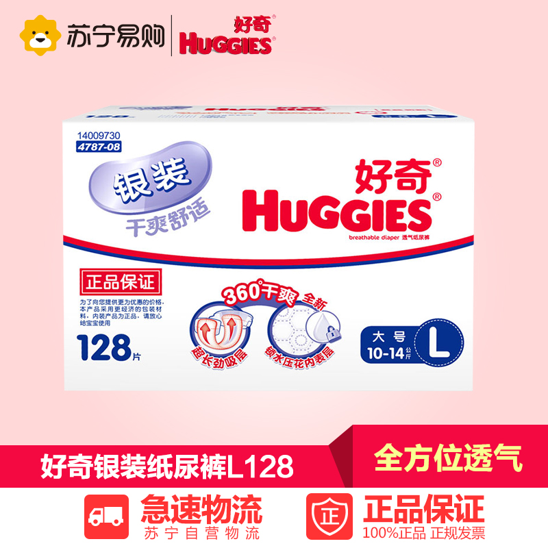 【苏宁易购】好奇银装L128片 干爽舒适纸尿裤 男女宝宝尿不湿L