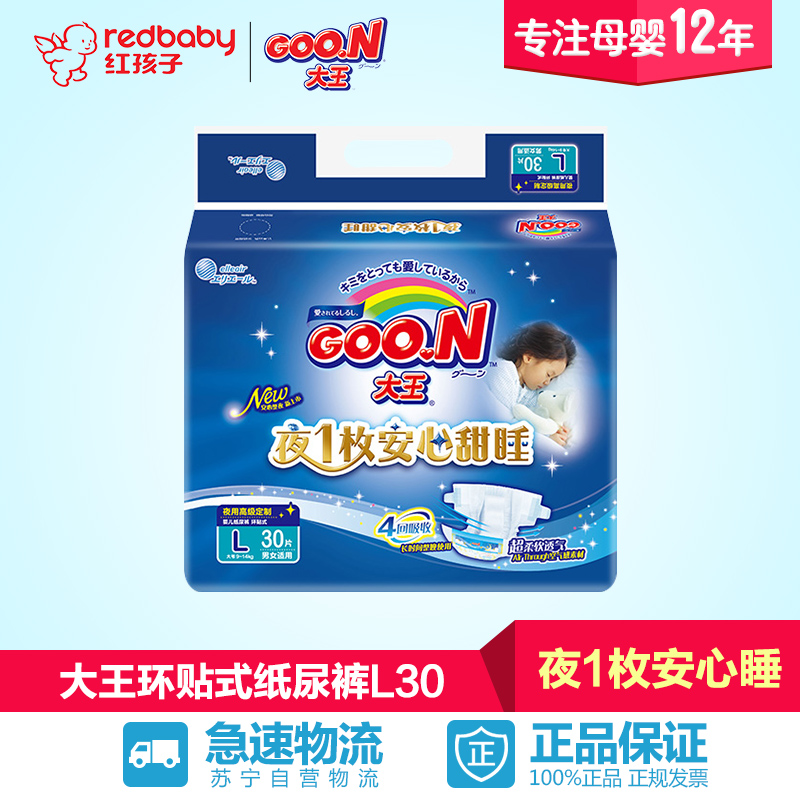 【红孩子母婴】大王GOO.N环贴式纸尿裤甜睡系列L30片 尿不湿