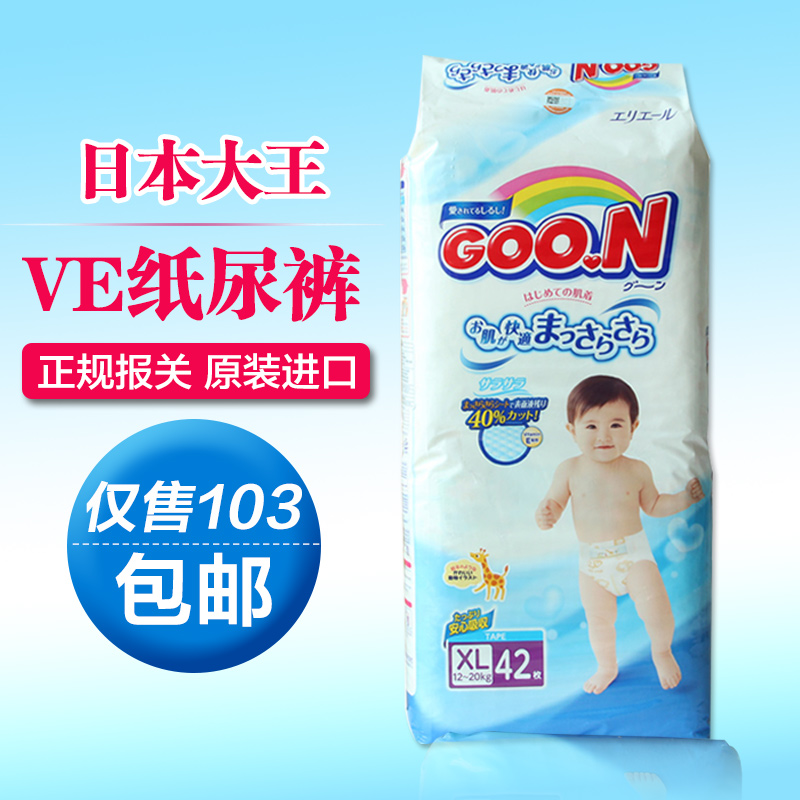 日本原装进口大王纸尿裤 婴儿VE尿不湿XL42片 加大号 日文版