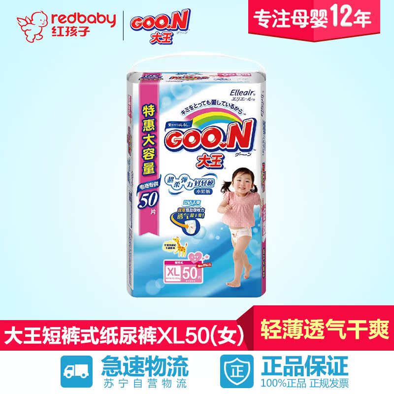 【红孩子母婴】大王女宝宝短裤式纸尿裤XL50片电商专供(12-20kg)