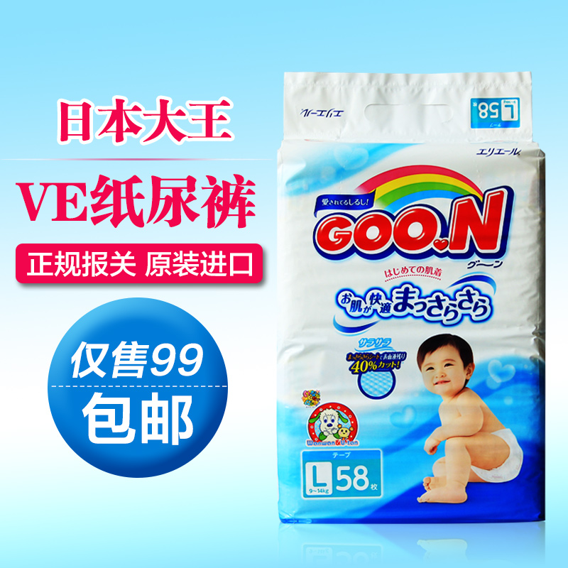 日本大王纸尿裤 VE婴儿纸尿裤l54+4 宝宝尿不湿L58片