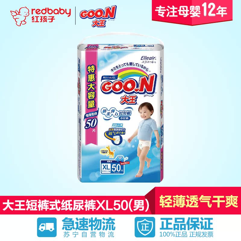 【红孩子母婴】大王男宝宝短裤式纸尿裤XL50片电商专供(12-20kg)
