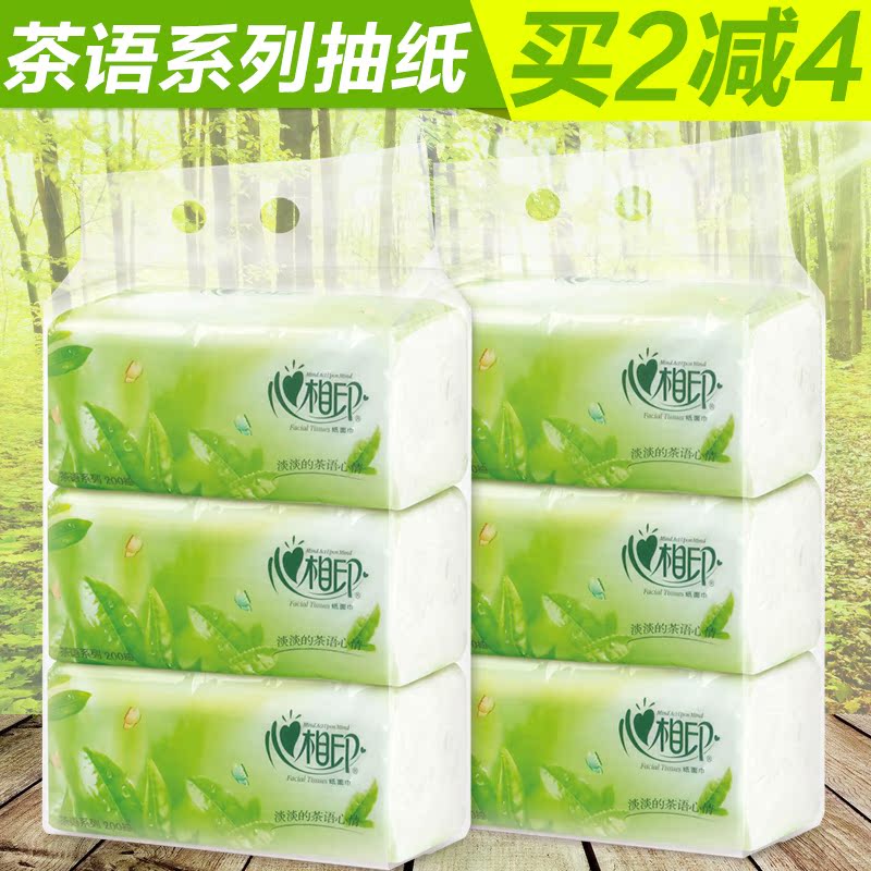 满2减4 心相印抽纸茶语面巾纸餐巾纸软抽152抽x3包x2提 DT3200