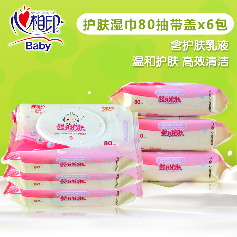 心相印婴儿湿巾婴儿湿纸巾宝宝湿巾纸新生儿护肤湿巾80抽带盖6包