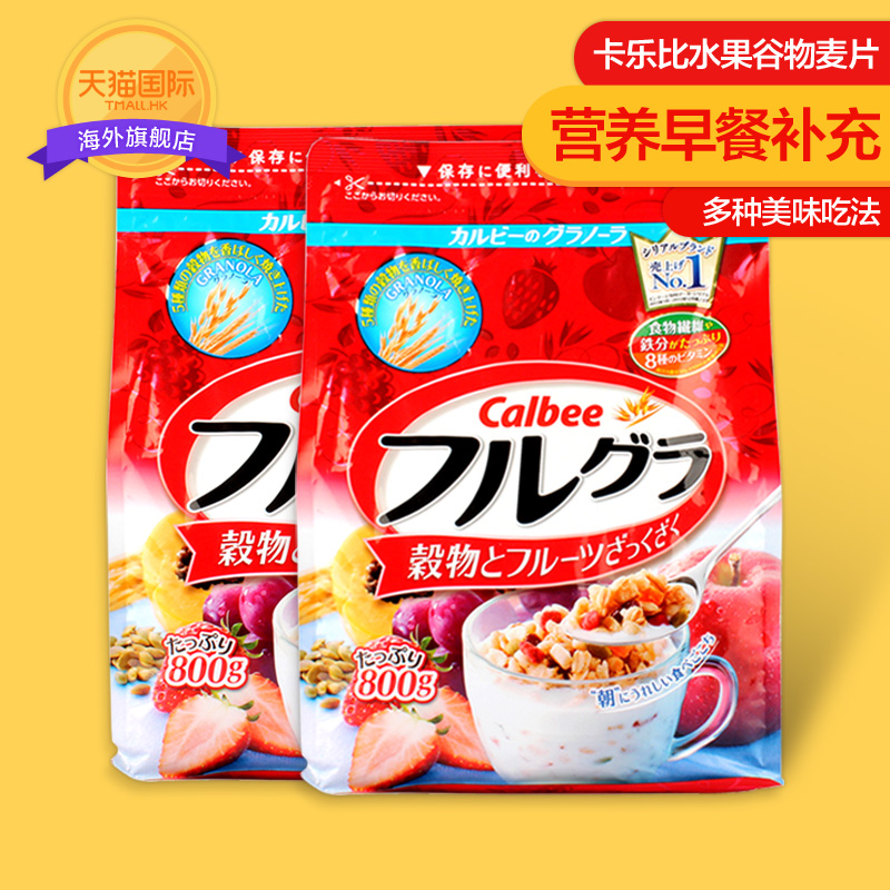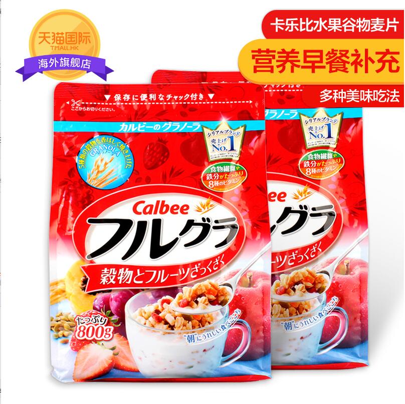 2袋日本Calbee/卡乐比营养早餐水果颗粒果仁谷物800g冲饮麦片