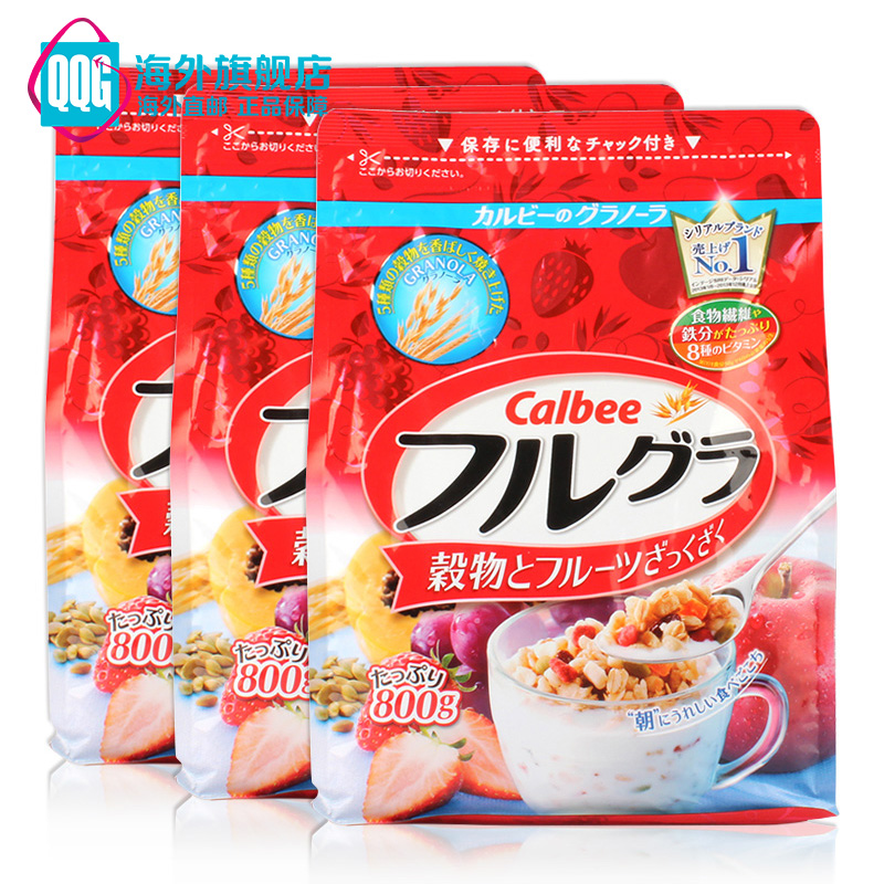 的热门产品3袋装日本Calbee/卡乐比营养早餐水果颗粒果仁谷物800g冲饮麦片