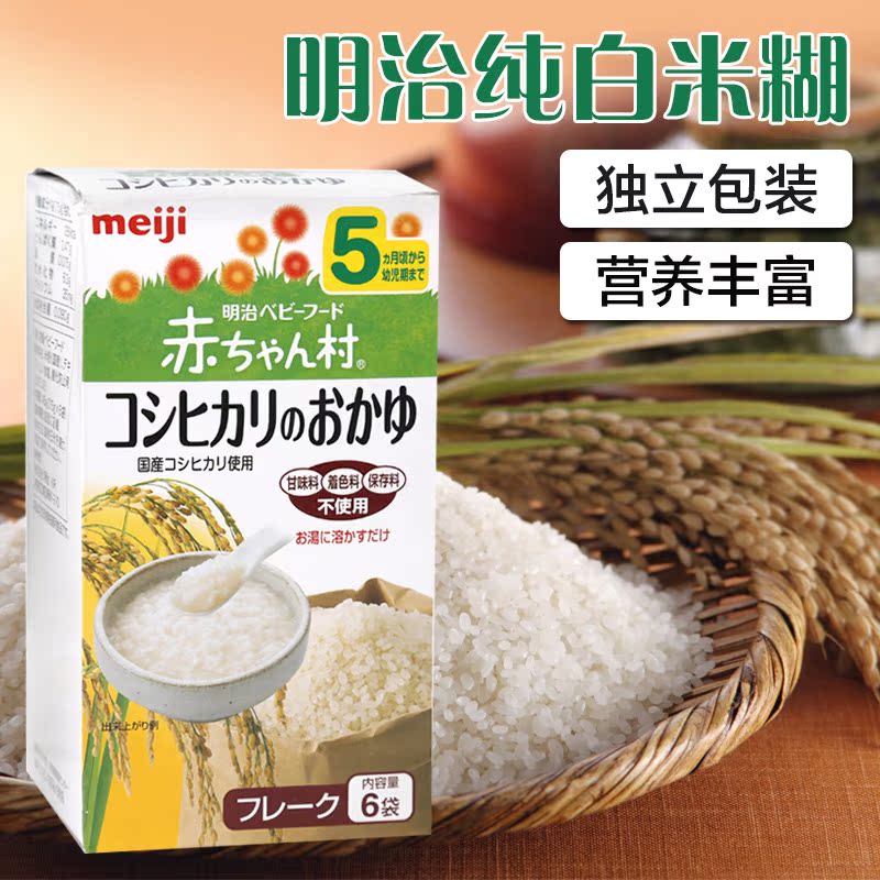 日本原装 明治辅食Meiji婴儿纯白米糊/米粉 7.5g*6包 香港直邮