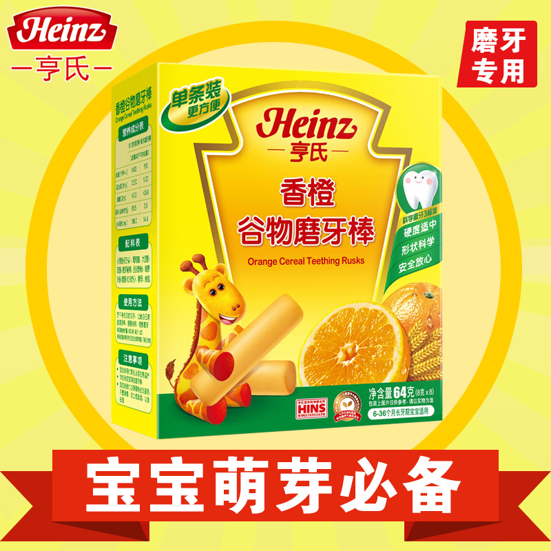亨氏香橙味磨牙棒64g 婴幼儿磨牙棒 宝宝辅食 婴儿饼干 儿童零食