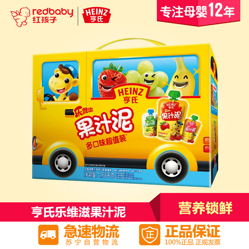 【红孩子母婴】亨氏乐维滋果汁泥多口味超值装120g*14袋 婴儿辅食