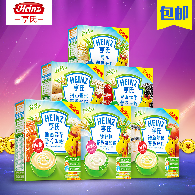 的热门产品亨氏米粉 婴儿+强化钙铁锌+黑米+淮山+鱼肉+鳕鱼400克盒装