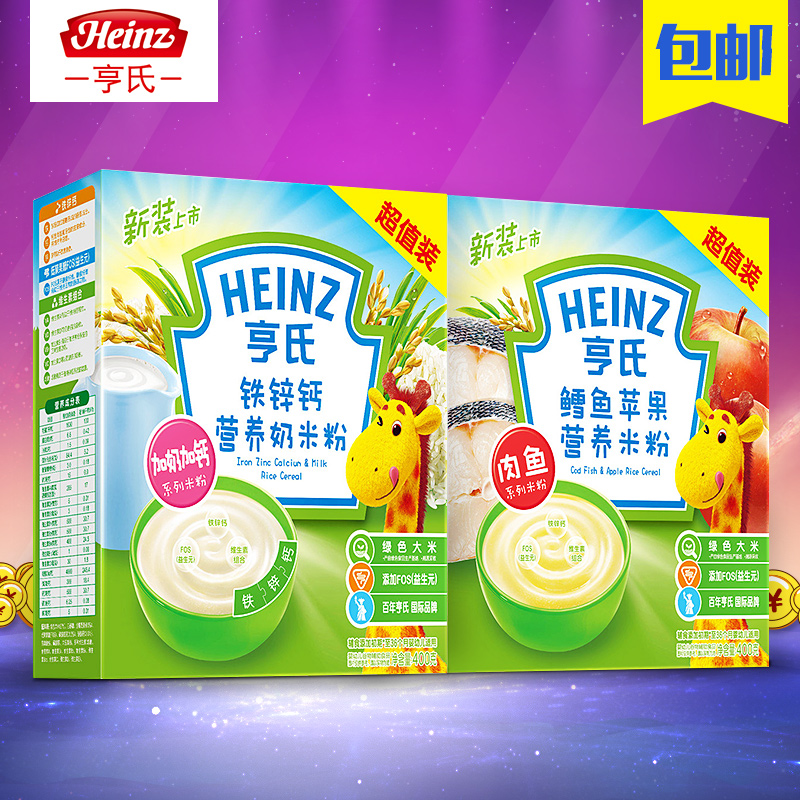 亨氏/heinz婴儿米粉 辅食 鳕鱼苹果+强化钙铁锌超值装400g+400g