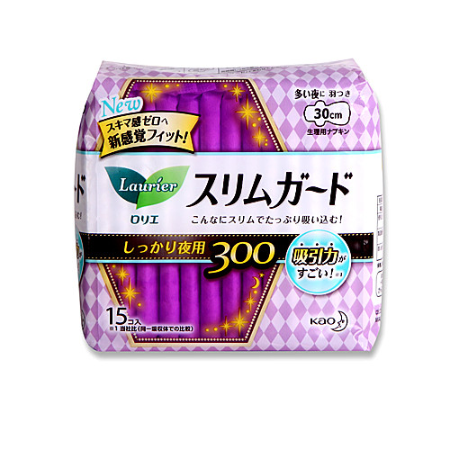 日本原装花王LAURIER夜用护翼型卫生巾30cm15片*瞬吸超薄1mm