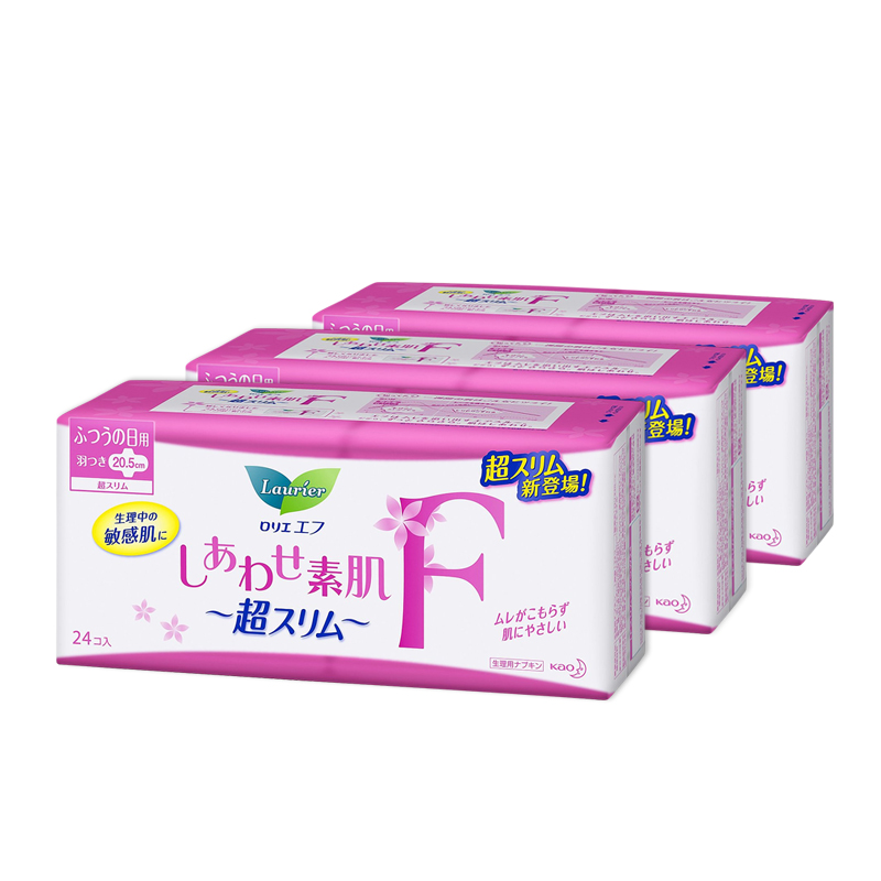 花王乐而雅F系列棉柔日用无荧光剂进口卫生巾20.5cm24片 3包装