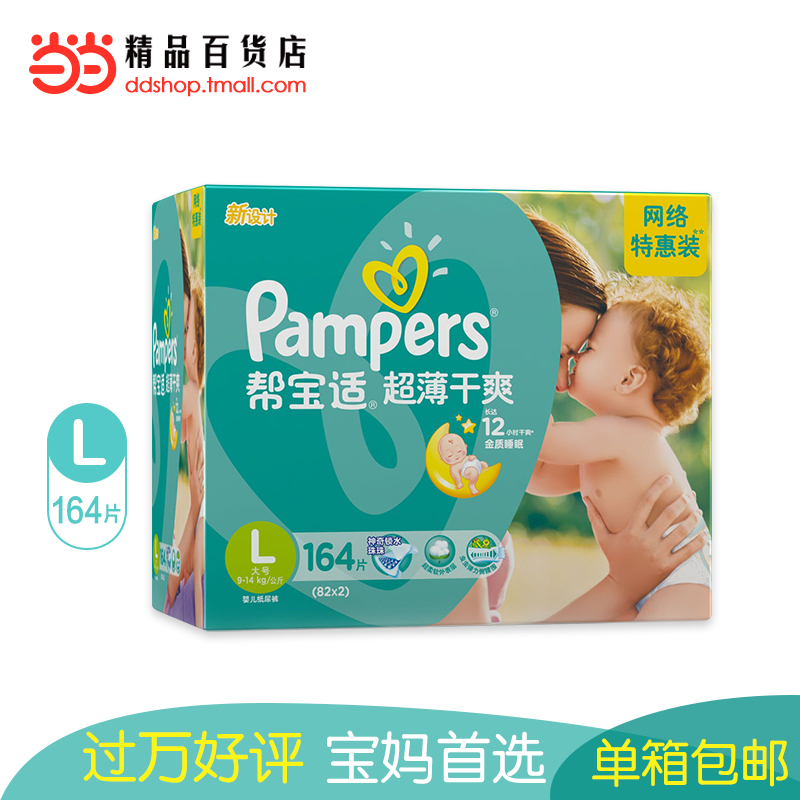 的热门产品当当网百货 帮宝适超薄干爽L164片大号纸尿裤 婴儿尿不湿男女通用