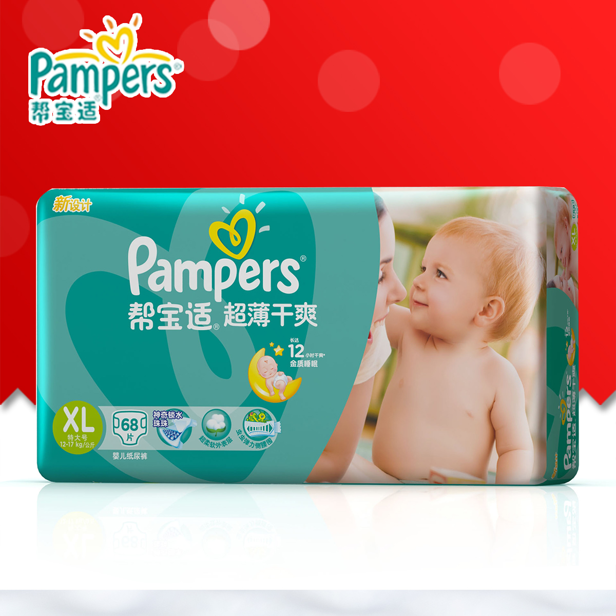 帮宝适XL超薄干爽纸尿裤新生儿尿不湿加大号68片男女12-17公斤