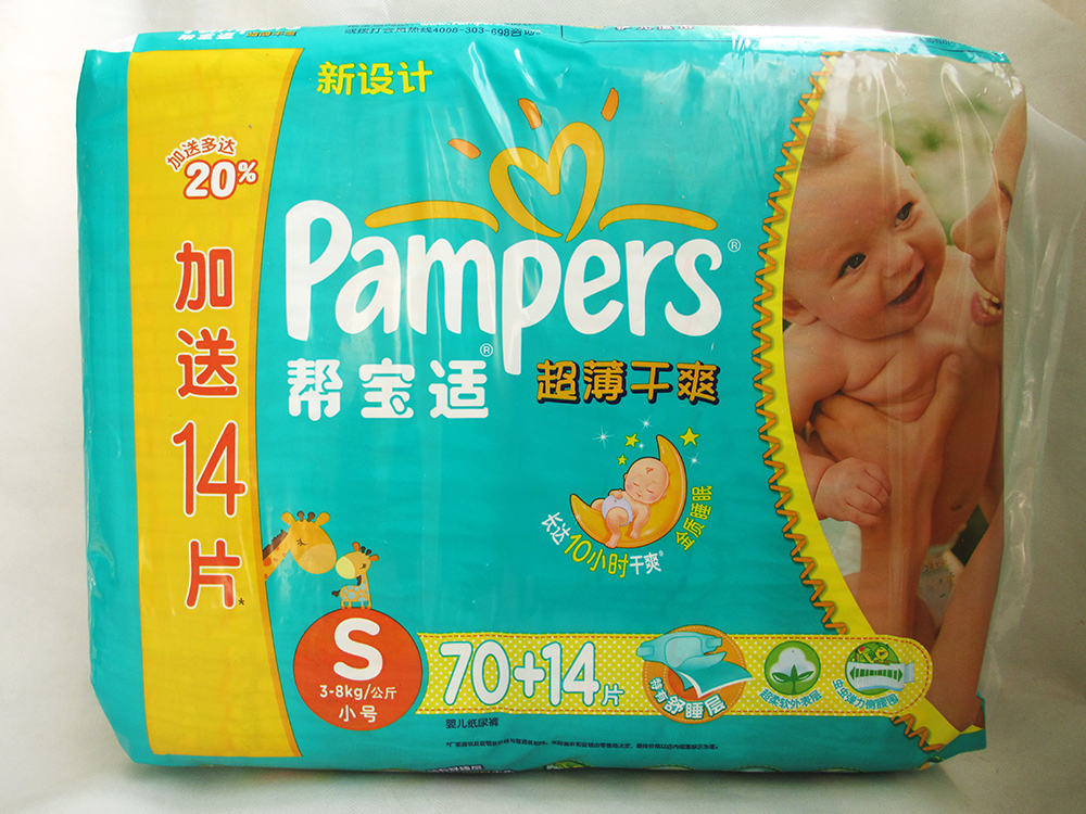 Pampers/帮宝适 超薄干爽宝宝尿不湿 婴儿纸尿裤 S70+14 3-8公斤