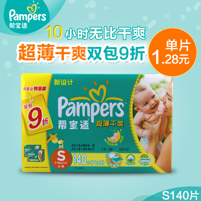 帮宝适婴儿尿不湿夏季超薄干爽九折双包纸尿裤 小号S70*2 140超柔