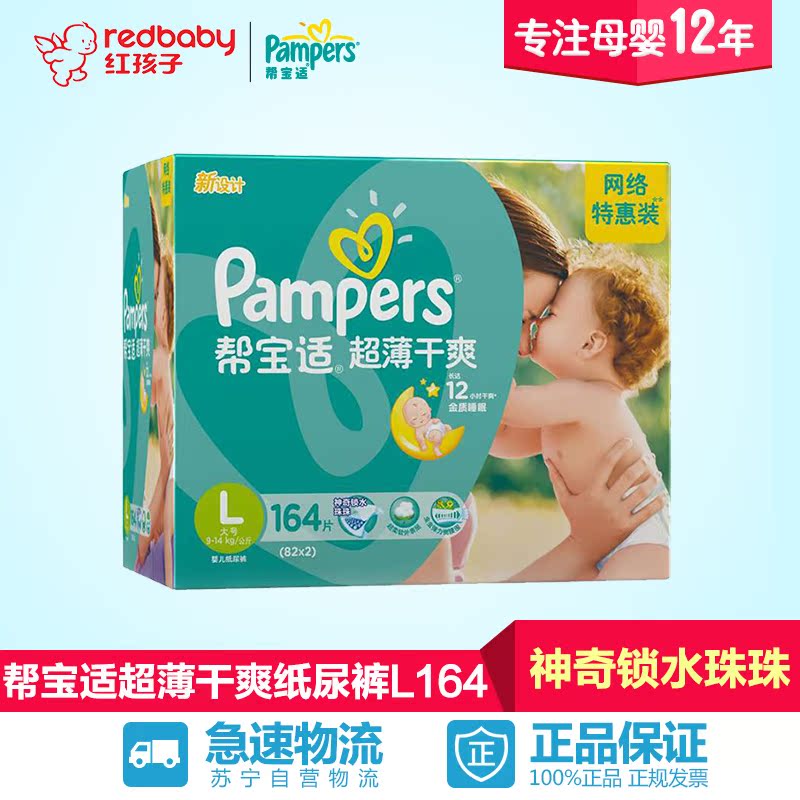 【红孩子母婴】帮宝适超薄干爽系列电子商务渠道彩箱装大号L164片