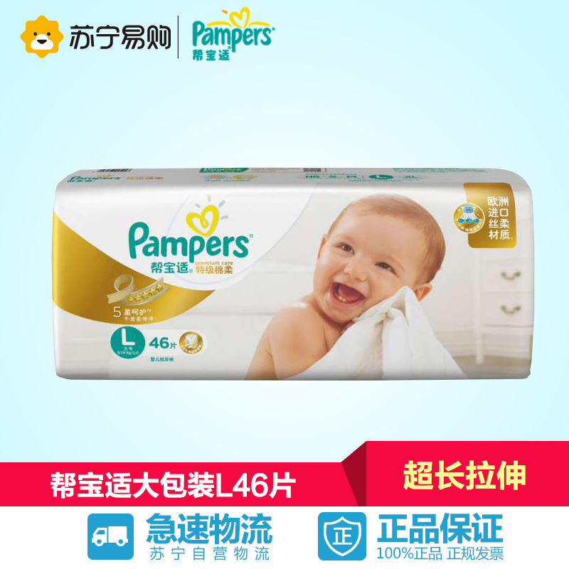【苏宁易购】帮宝适特级棉柔系列纸尿裤 尿不湿大包装L46片