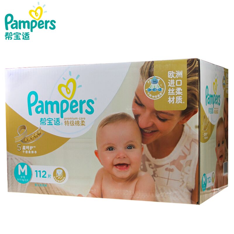 帮宝适尿不湿/纸尿裤特级棉柔中号M112白金帮彩箱装 多省包邮