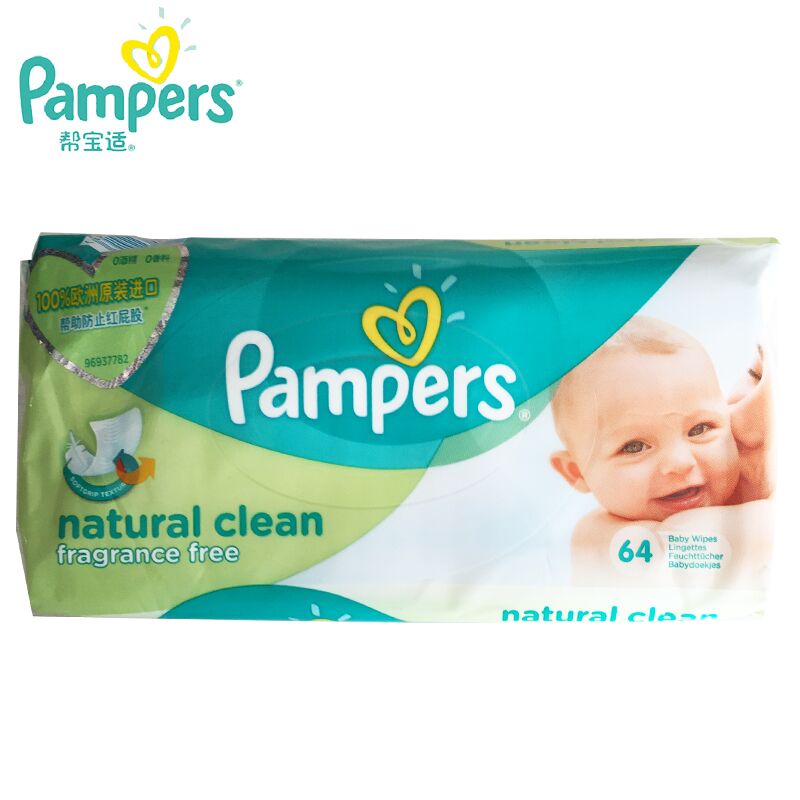 帮宝适湿巾自然纯净婴儿湿巾64片欧洲进口湿纸巾 多省包邮