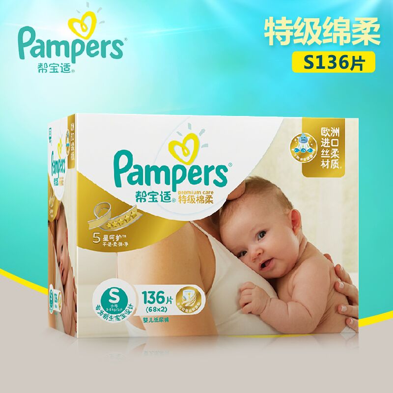 帮宝适纸尿裤/尿不湿特级棉柔白帮小号S136片 多省包邮