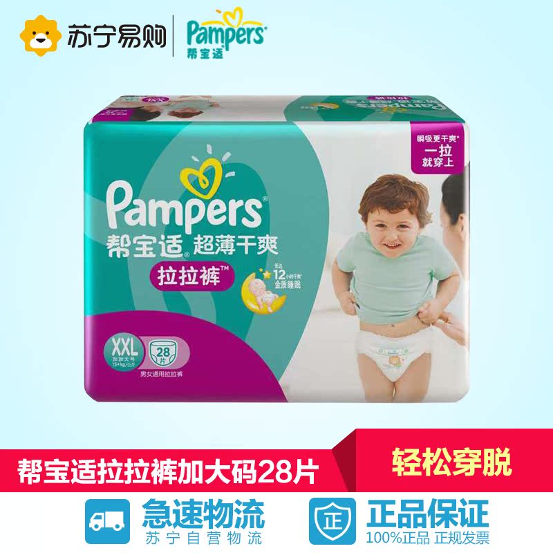 【苏宁易购】帮宝适纸尿裤XXL28 超薄干爽拉拉裤加加大号 尿不湿