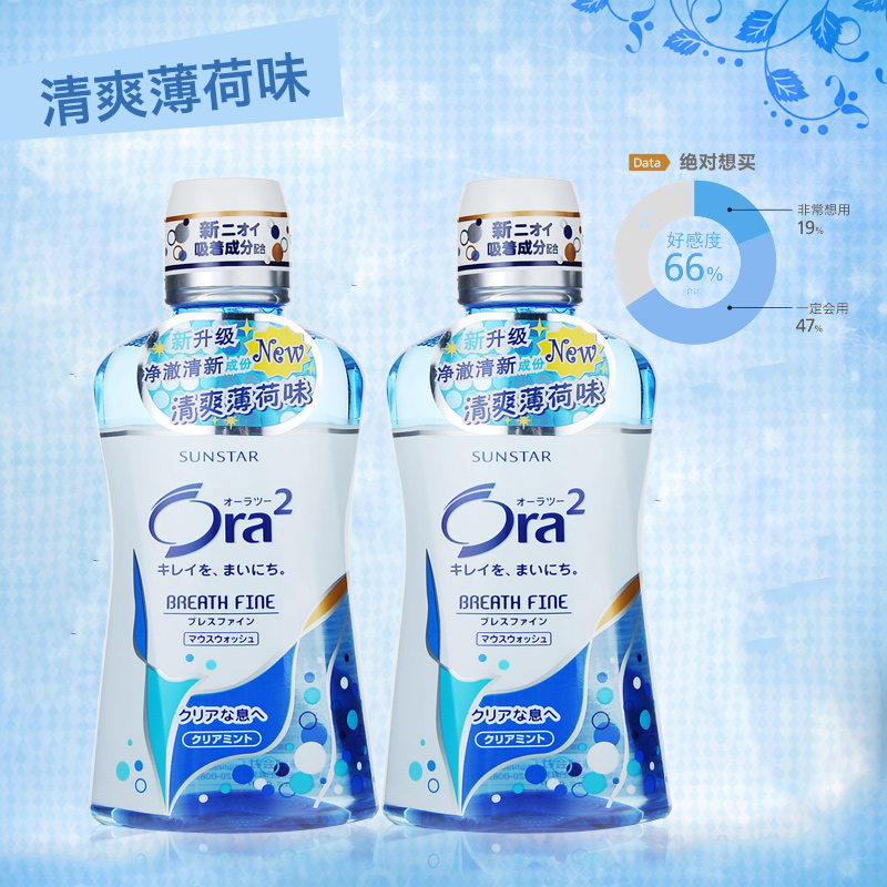 皓乐齿Ora2盛势达SUNSTAR 亮白净色漱口水450ml 天然薄荷 日本