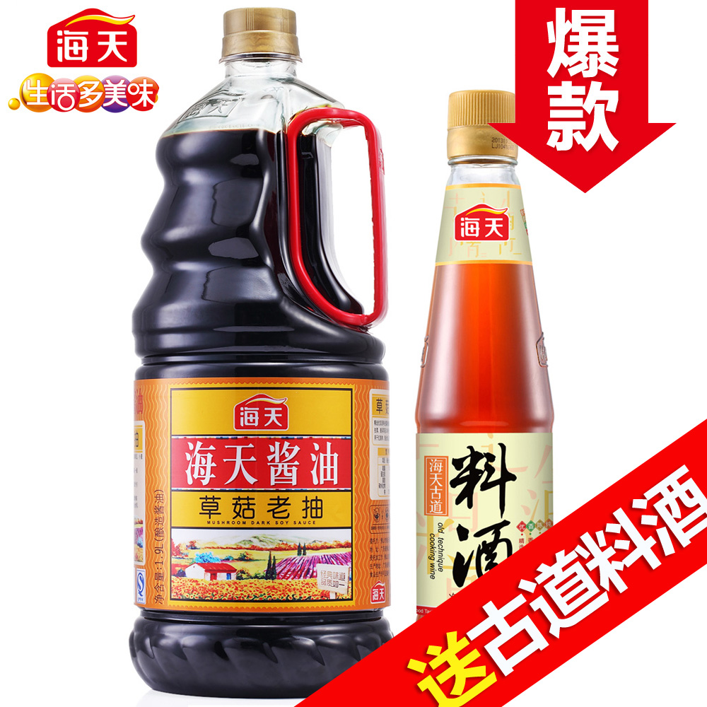 【天猫超市】海天草菇老抽1.9L+古道料酒450ml 非转基因