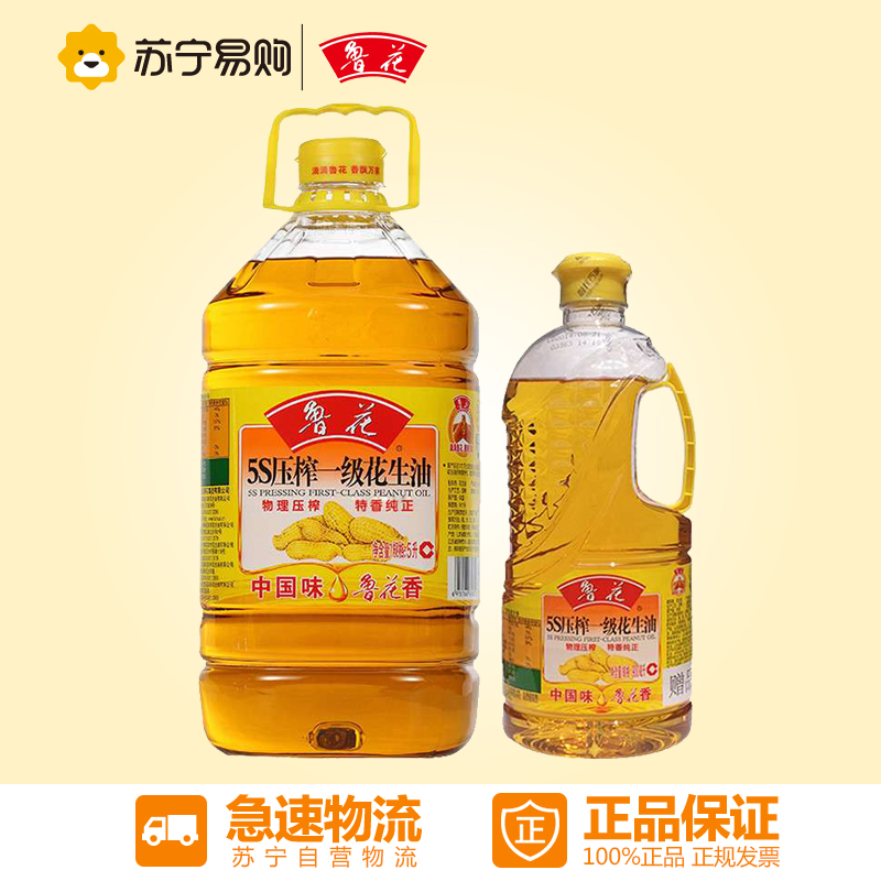 【苏宁易购】鲁花 5S压榨一级花生油 5L+900ml